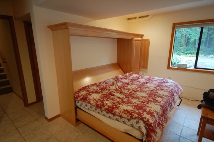 Explore birch furniture designs, including Queen wall beds with side cabinets, hidden-access cabinetry, and modern melamine finishes.