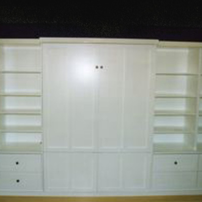 Explore queen wall beds with painted raised panels, built-in cabinets, and accent lighting. Features include desks, tables, sofas, and shaker armoire designs.